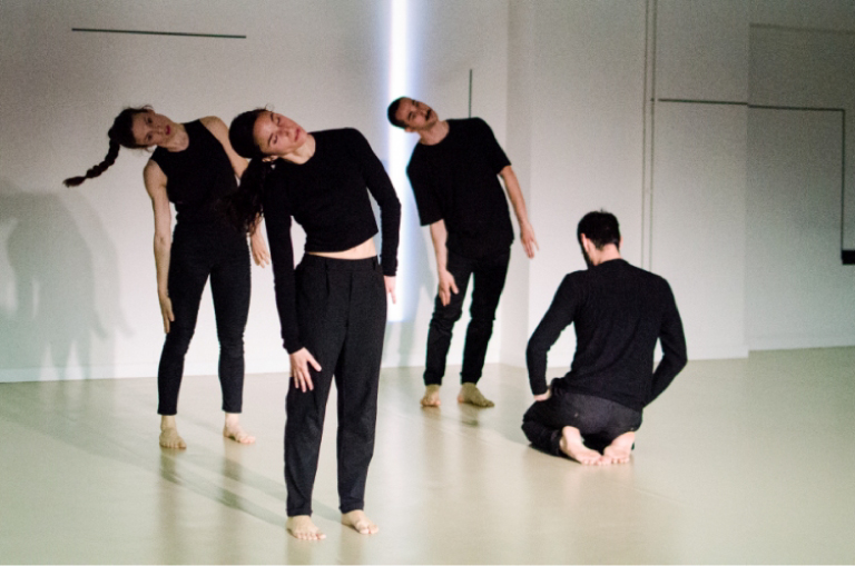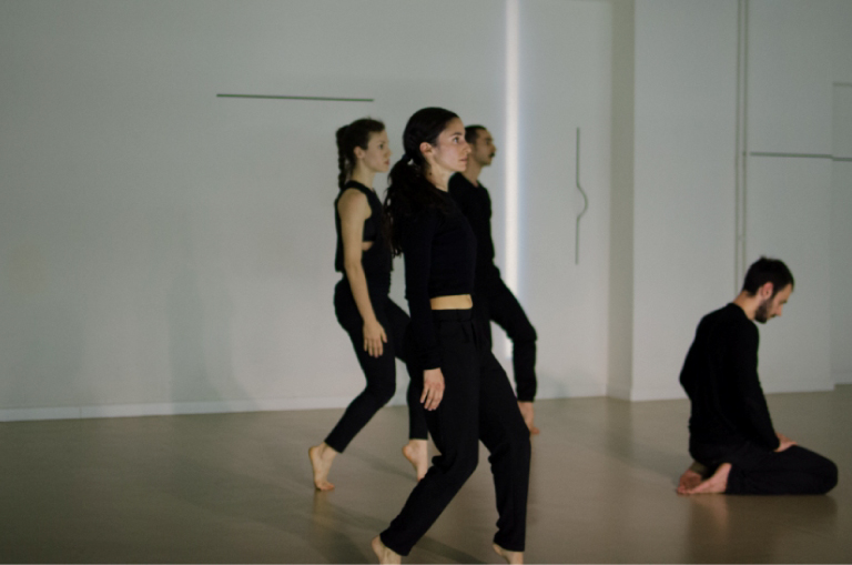 ANY ONE is a work that begins with personal quests but creates a body quartet, a live orchestra that processes and negotiates the position and relationships of one into symbolic social totals, revealing structures and correlations in formation, with tender and yet sharp aspects. Significant elements of the aesthetics of motion are the rhythm and the meaning of time, the reason – as logical – in motion, as well as the accuracy of the movements and the linearity created by the geometry of body and space. Investigating the contrast of Micro-movement with that of unexpected big movements or hyper-intensive movements. The purpose of this aesthetic approach is through the absolute harmony and perfect execution of the kinetic material, to see the naked personality of each dancer through a strictly coded and defined context: motion quiet as an ordinary day or full of angles and intensity such as a the day when everything changes. Immorcations in uncomfortable positions and intense kinetic pattern at unexpected times. Quiet bodies with soft chest.