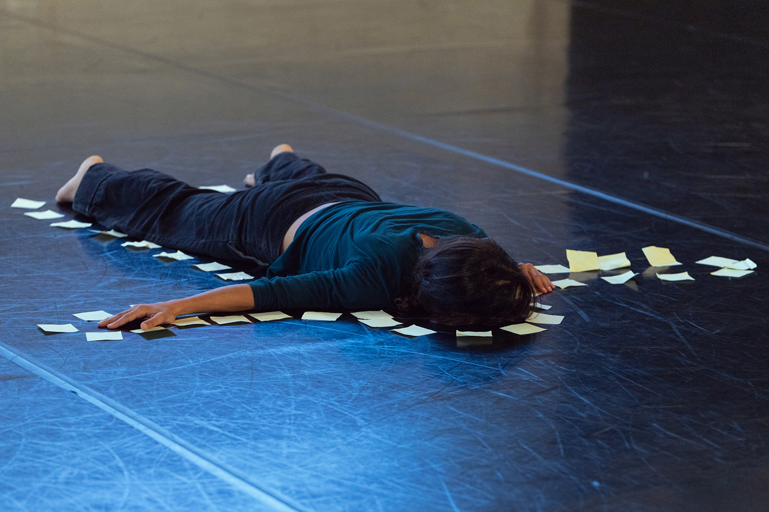 Her name is Thalia or Adriana or Marigo, Eleni, Xenia, Panagiota… She is 90, or 15, 50, one, 30 years old. In some life, she wanted to become a mother, in another she did, and in a third, she neither wanted nor became one. She works hard. Every day. She works with herself, works for herself, works for others. She is a woman with a shell. She is a woman like an onion. A movement solo with speech. About the shell we create to endure and about the memory we inherit, which is recorded in our DNA. A solo of the female gender. A solo where gravity changes as and when Thalia decides.
